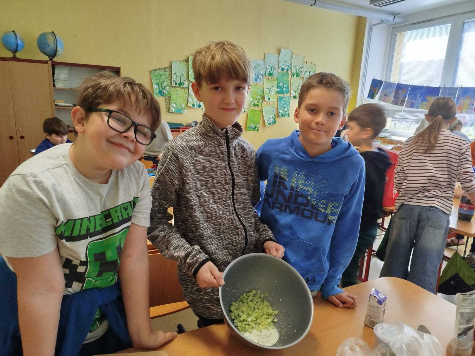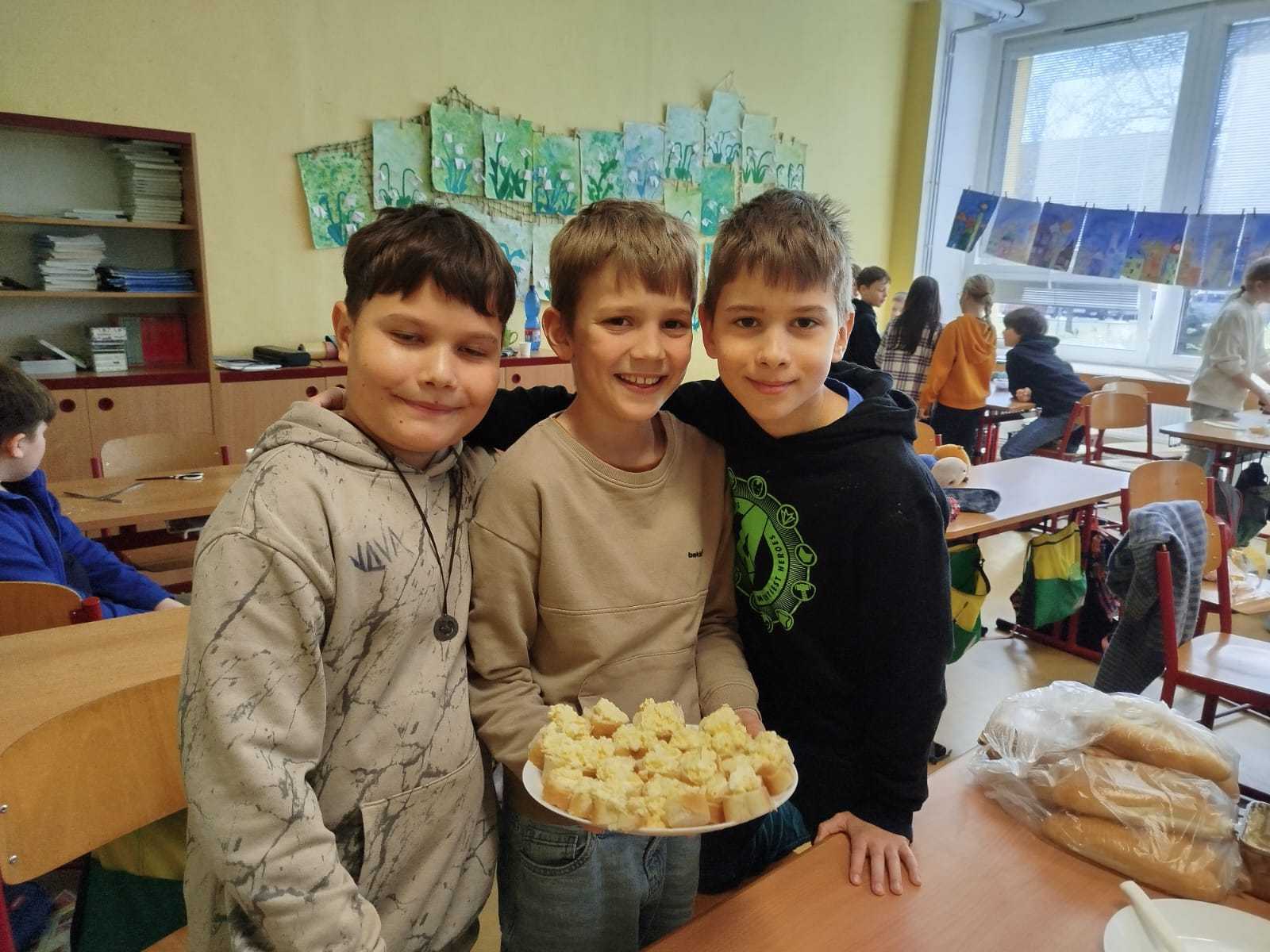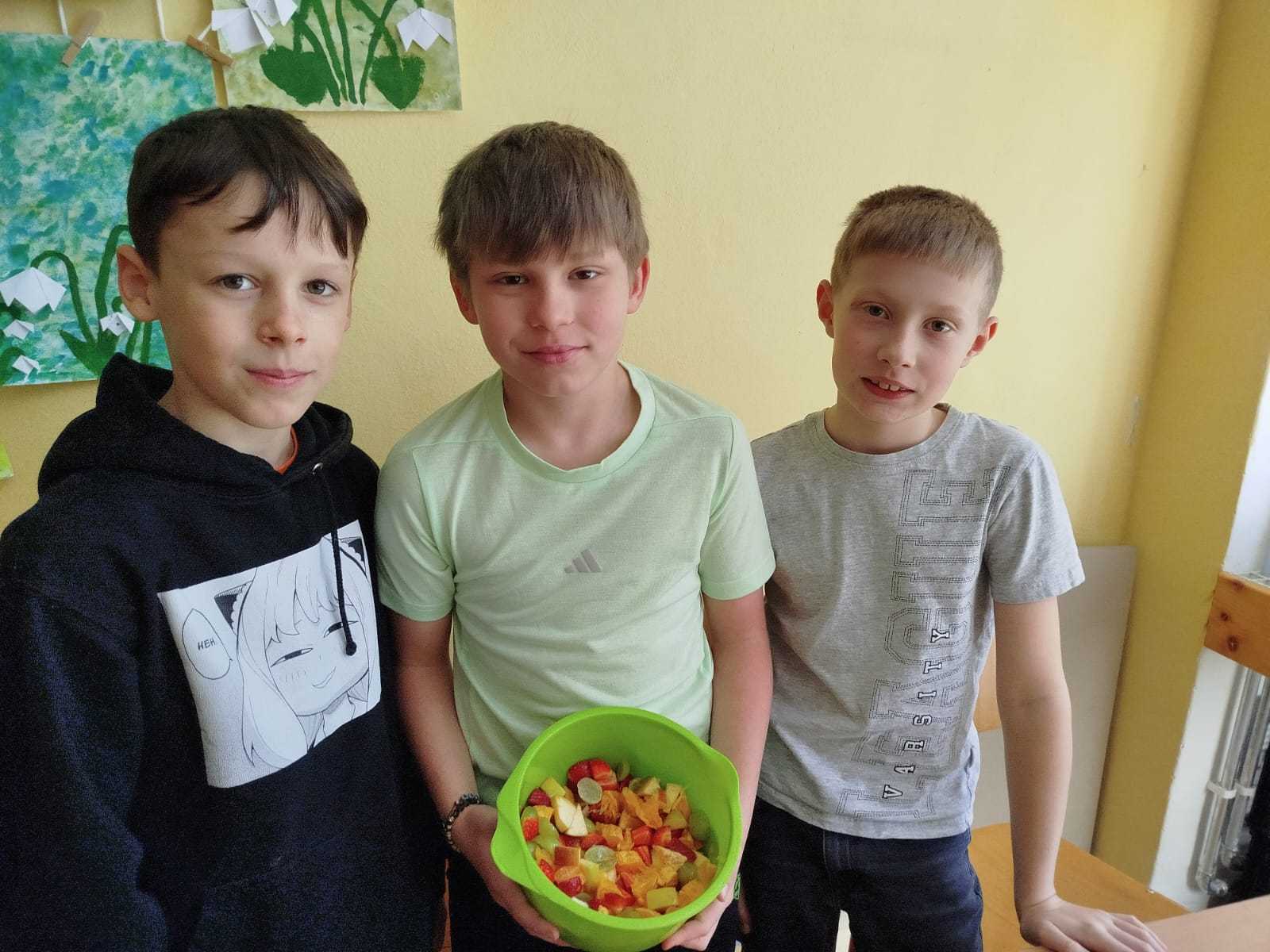 Tak proč toho nevyužít, řekli jsme si s prvňáčky a od nápadu nebylo daleko k jeho realizaci. V rámci tělesné výchovy a prvouky jsme si zašli na vycházku, abychom nasbírali, co nám barevná podzimní příroda nabízí, něco si děti přinesly z domova. S „našimi deváťáky“ jsme se už měsíc neviděli, a tak jsme si je pozvali jako pomocníky.