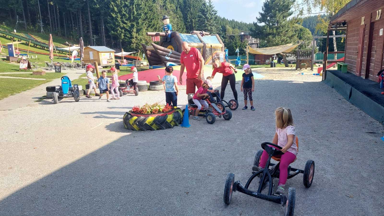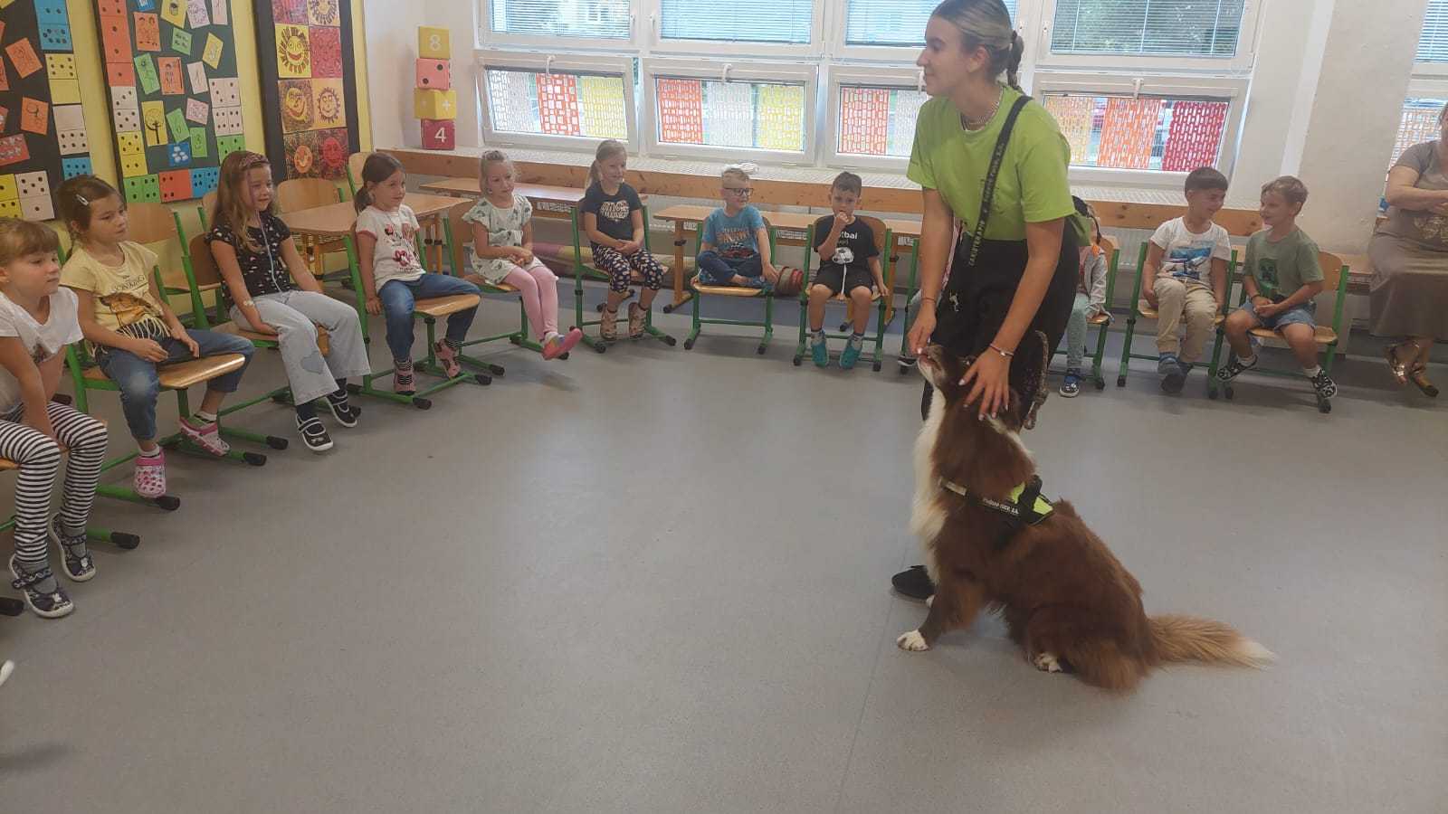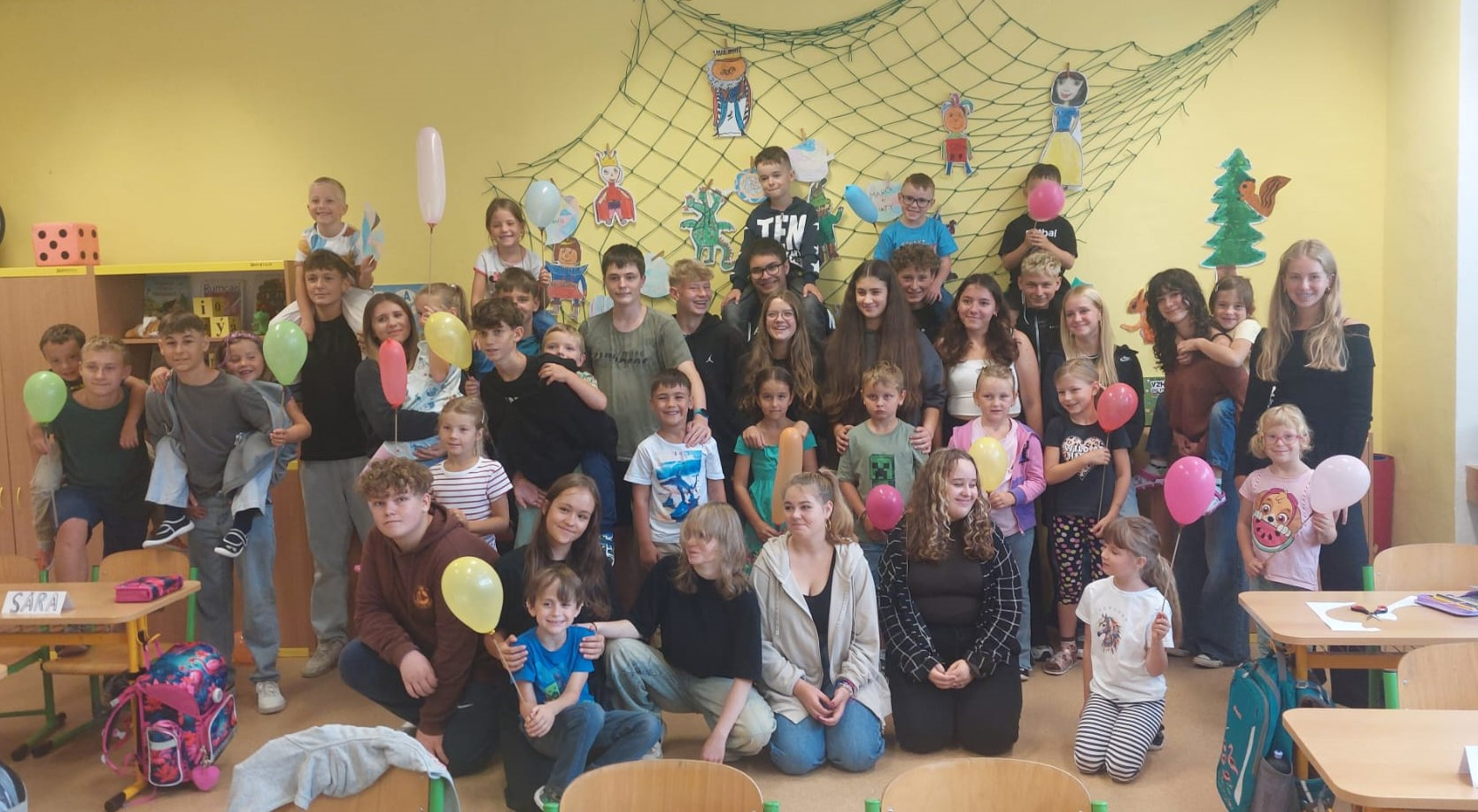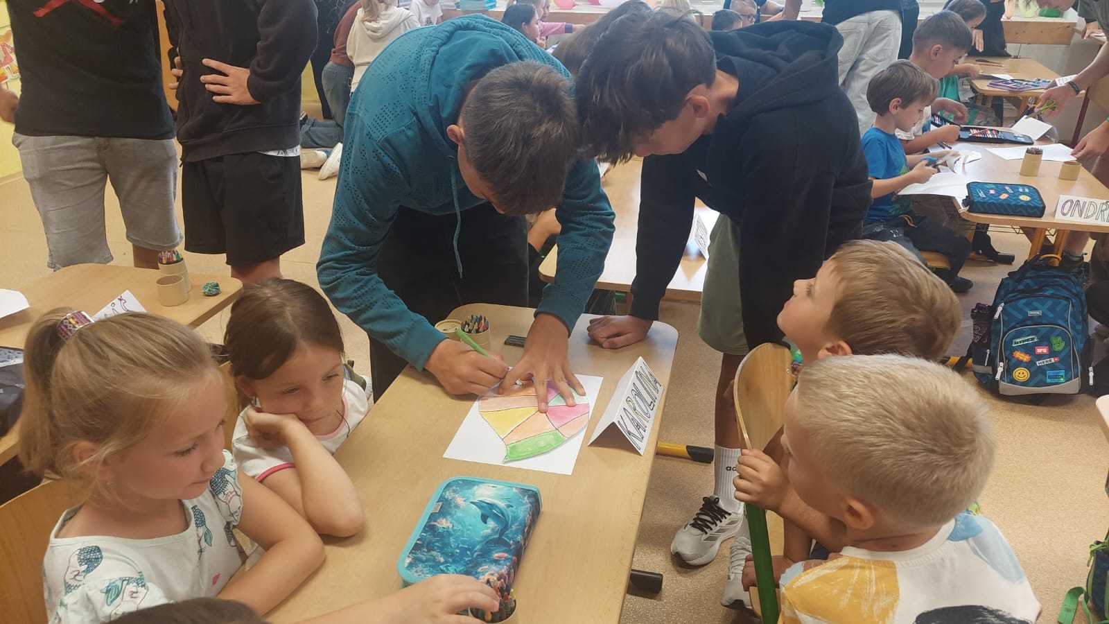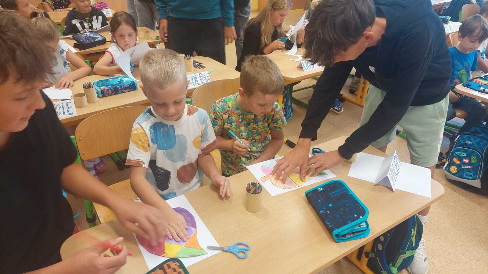 Prvňáci si svůj „adapťák“ užili hned v prvním týdnu. Od středy 3.9. do pátku 5.9.2025 byl pro ně připraven tradiční adaptační program, ve kterém se mohli blíže seznámit se svými patrony deváťáky. Společně vytvořili výtvarné dílo, při kterém se vzájemně poznali. Vždyť celý školní rok budou na ně dohlížet a setkávat se při společných akcích. V programu nechyběla ani z minulých let oblíbená muzikoterapie a canisterapie společností Podané ruce, z.s. Exotické hudební nástroje a veselí pejsci přispěli k usměvavým tvářím našich nejmenších. Vyvrcholením seznamovacího týdne byl výjezd autobusem do beskydského střediska v Bílé. Zde byly připraveny olympijské hry plné sportovních disciplín, do kterých se s chutí všichni zapojili. Krásné slunečné počasí navodilo dobrou náladu. Vzájemné povzbuzování a skandování se rozléhalo celým údolím.