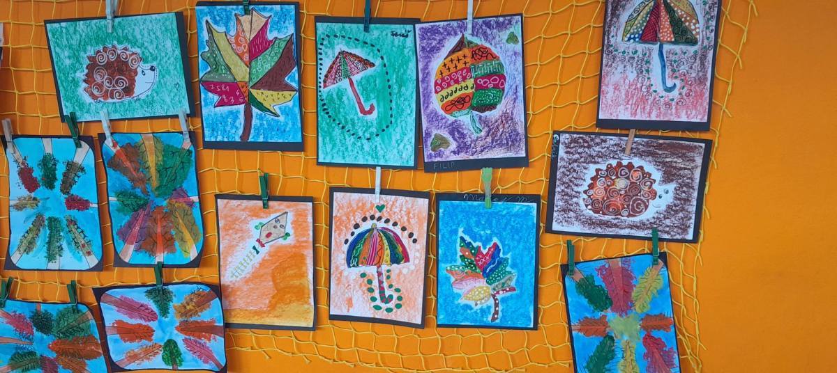 Věnovali jsme se podzimním tématům – skládali a psali podzimní básničky, malovali na faře i na školní zahradě a vyzkoušeli různé výtvarné techniky. Vznikla tak krásná dílka s motivy listů, deštníků a ježků. Po prázdninách jsme také opět začali péct ve školní kuchyňce. Tentokrát voněla družina nutelovými tyčinkami, která se dětem moc povedly i chutnaly.